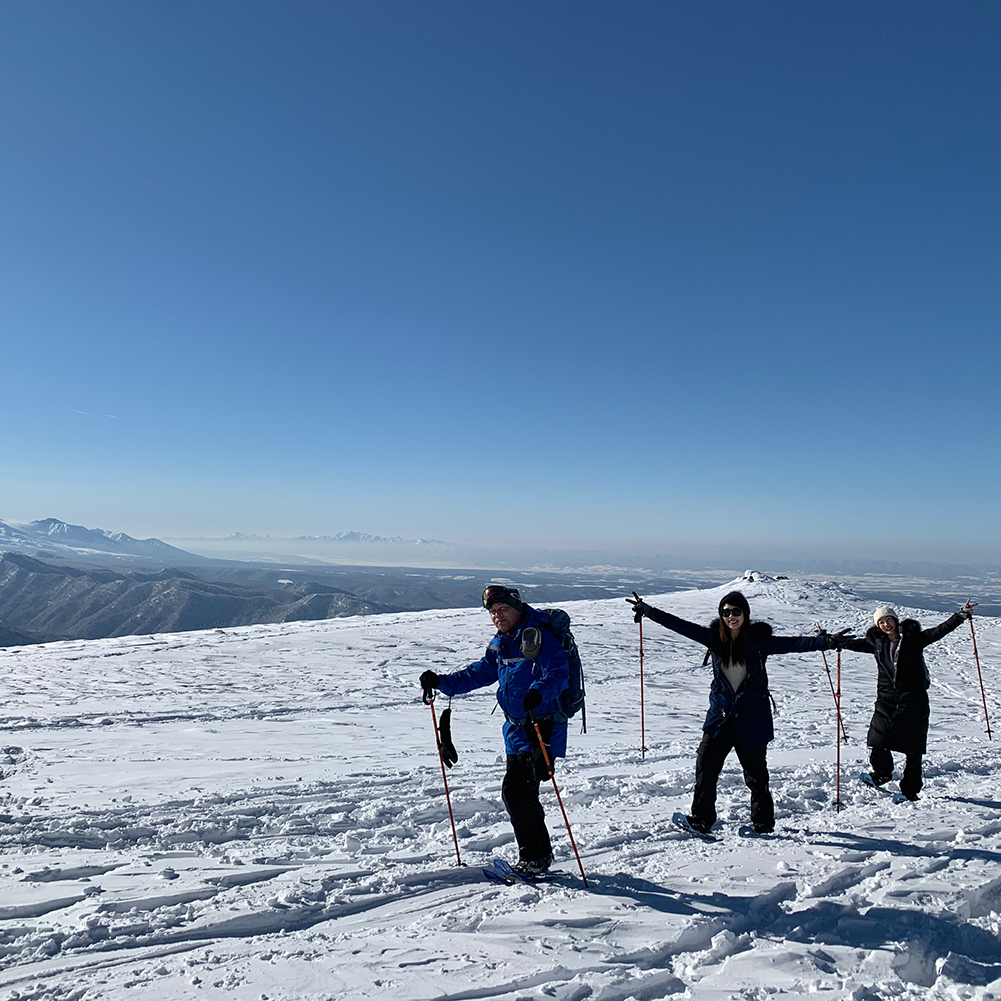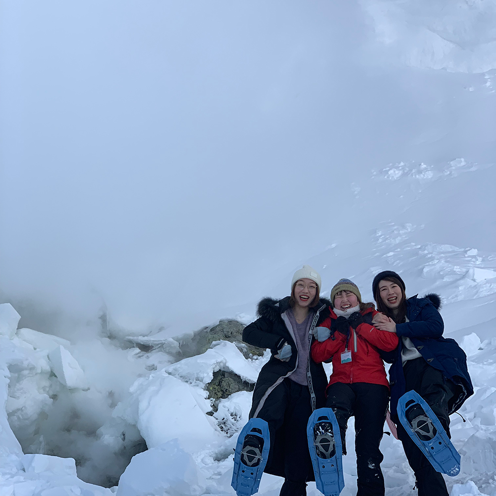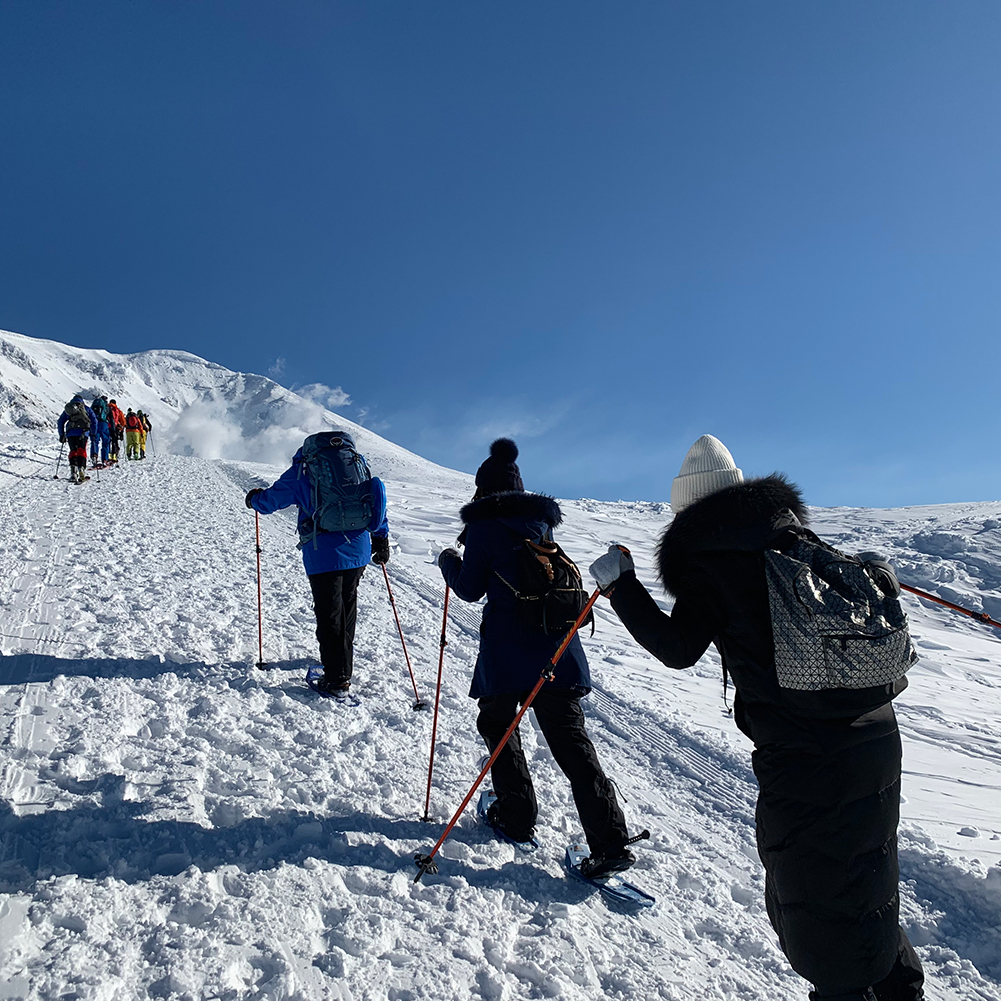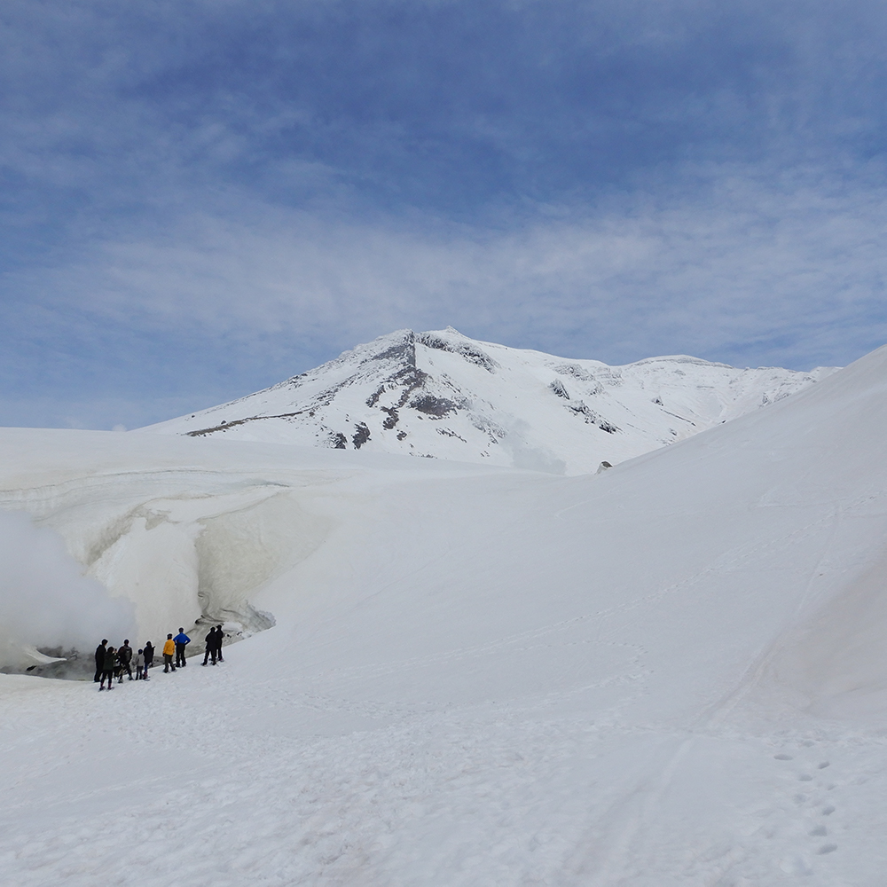 The fumarole on Asahidake in the Daisetsuzan National Park is impossible to approach in the summer time, but the winter allows us to snowshoe there. You will have an outstanding experience of the earth breathing with an unbelievable scenery with a panoramic view of the Daisetsuzan mountain range.