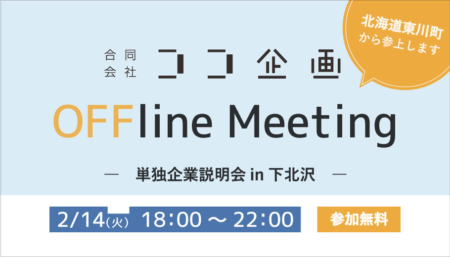 東川町を拠点にローカルツーリズムを展開しているココ企画が東京にて、企業説明会を行います。