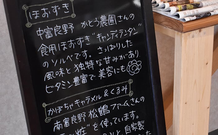 富良野の野菜や果物を使って、ジェラートを手作りしています。