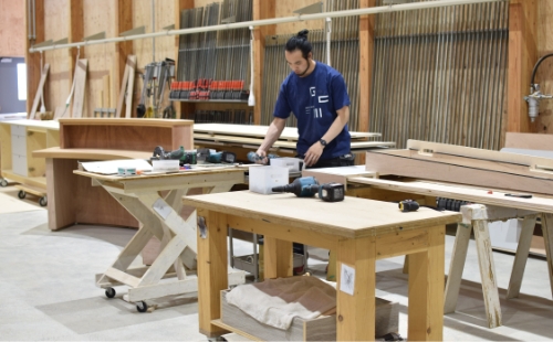 令和7年にオープンした「木工」を基盤とした産業観光拠点「CRAFTPIA (クラフトピア)」がコースの舞台。実際に家具職人さんが働いている様子を、間近で見ることが出来る施設です。木の香りに包まれた開放的な空間の中で「東川町オリジナルのキーホルダー」を作りましょう。材を選んで、削ったり、貼ったり、磨いたり。家具職人との木工体験を通して、東川町のモノづくりの神髄に触れていってください。