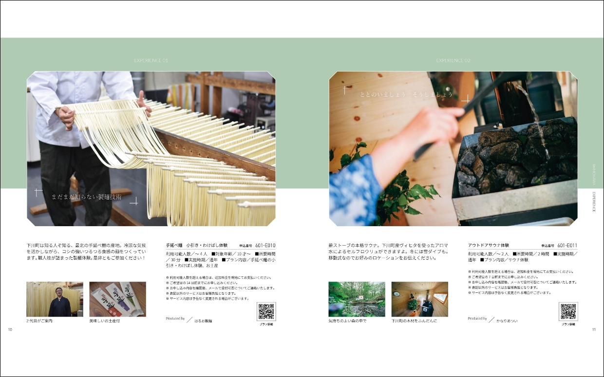 WORKS · 2025/03/27 「ここのこと。しもかわ」制作・販売開始 「ここのこと。」シリーズの第四弾。林業のまち下川町を舞台に、暮らしに触れる体験型カタログギフトを約1年かけて制作いたしました。 町内での説明会を開催し、取材・撮影で何度も現地に足を運び、丁寧に2024年の下川町を記録した一冊です。 贈り物としての利用はもちろん、ふるさと納税を活用しての訪問もおススメ! クライアント:下川町・NPO法人しもかわ観光協会 実施メンバー お仕事のご相談はこちら tagPlaceholderカテゴリ: メディア, ツーリズム, ギフト